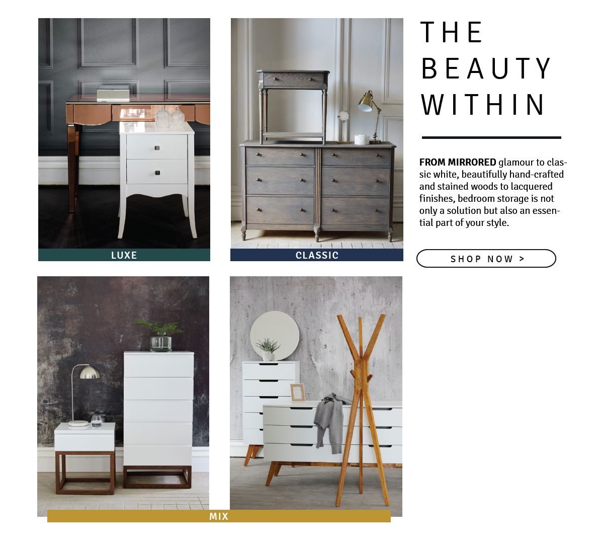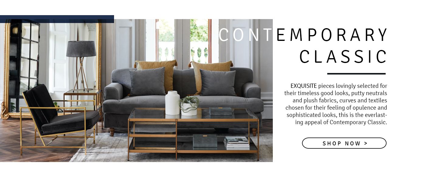 Exquisite pieces lovingly selected for their timeless good looks, putty neutrals and plush fabrics, curves and textiles chosen for their feeling of opulence and sophisticated looks, this is the everlasting appeal of Contemporary Classic.