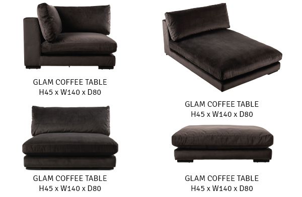 A sofa so comfortable you’ll want to lounge for hours, the Dane modular is built for durability and finished for snuggling. With individual oversized modular pieces in plush dark grey velvet, you can build and modify your couch to be as large and comfy as you would like. The LA-style low and extra deep seats invite you to sink in and never leave.