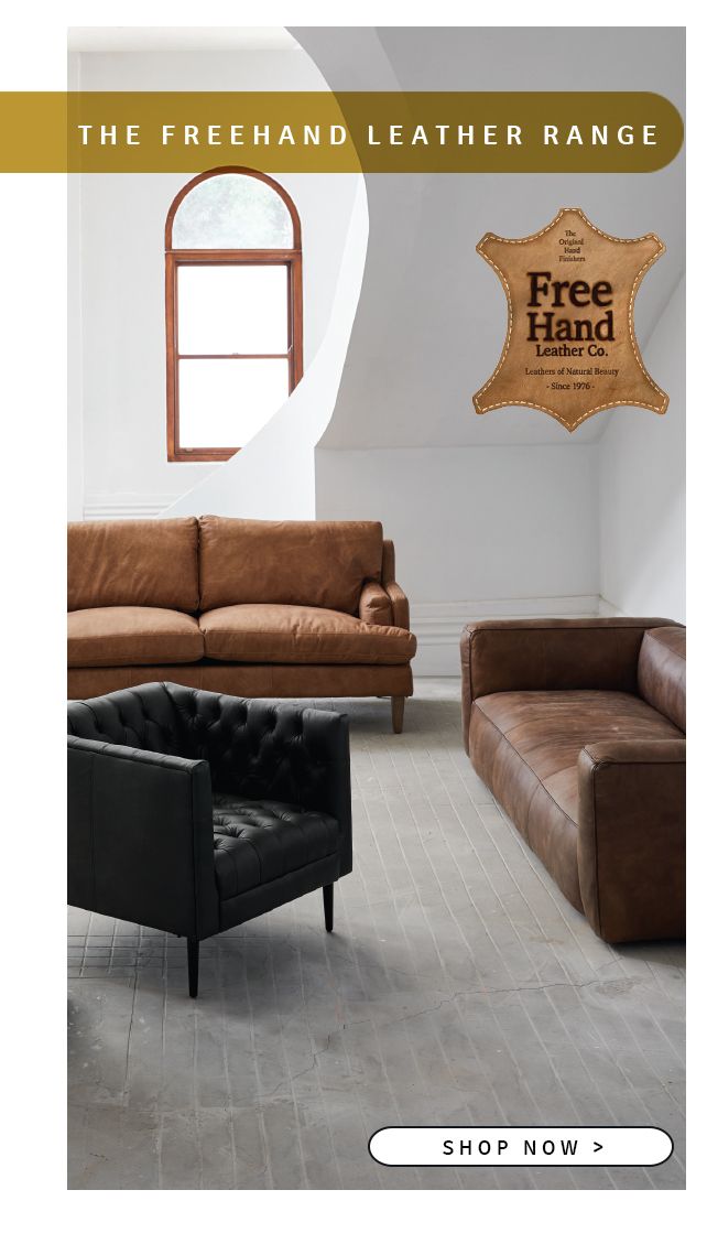 Our carefully selected, all natural full grain Freehand leathers are free from artificial processing and pigments and are finished entirely by hand. These natural surfaces are rich in colour and authentically soft and warm to the touch, hand-finished to gracefully absorb the marks and scratches that occur with use. Each piece will develop a rich patina over time, wearing in rather than out, looking better with age.