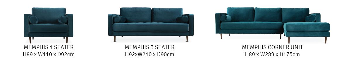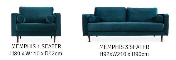 The Rich peacock blue velvet of the now iconic Memphis couch will make a bold impact in any room. Reminiscent of an era when style was everything, this is a statement piece that deserves its place at the centre of attention.