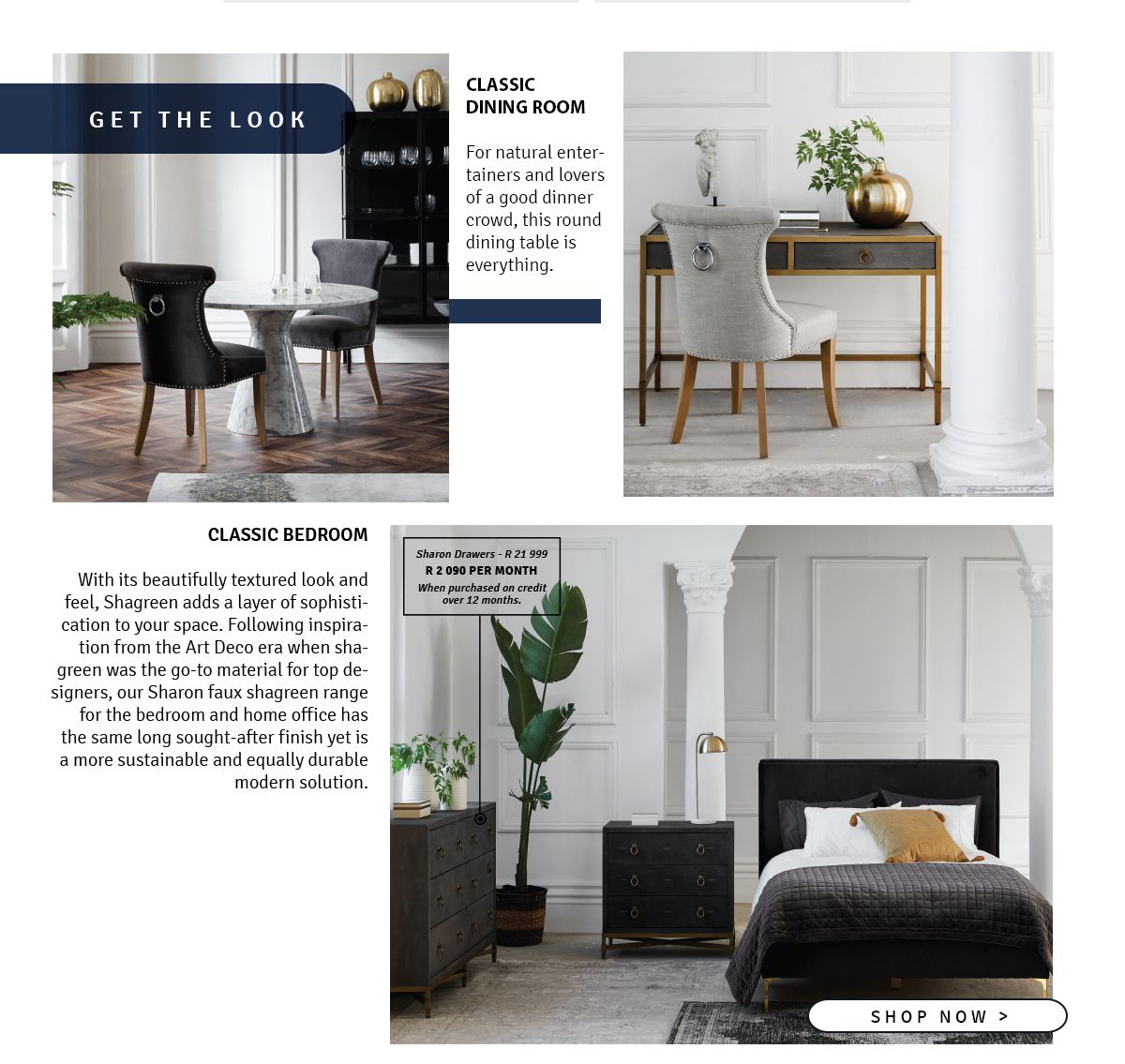 CLASSIC BEDROOM With its beautifully textured look and feel, Shagreen adds a layer of sophistication to your space. Following inspiration from the Art Deco era when shagreen was the go-to material for top designers, our Sharon faux shagreen range for the bedroom and home office has the same long sought-after finish yet is a more sustainable and equally durable modern solution