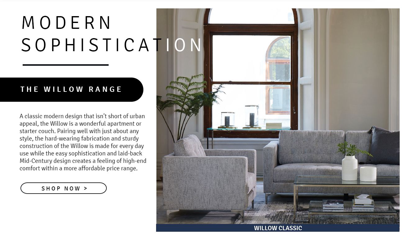 A classic modern design that isn’t short of urban appeal, the Willow is a wonderful apartment or starter couch. Pairing well with just about any style, the hard-wearing fabrication and sturdy construction of the Willow is made for every day use while the easy sophistication and laid-back Mid-Century design creates a feeling of high-end comfort within a more affordable price range.